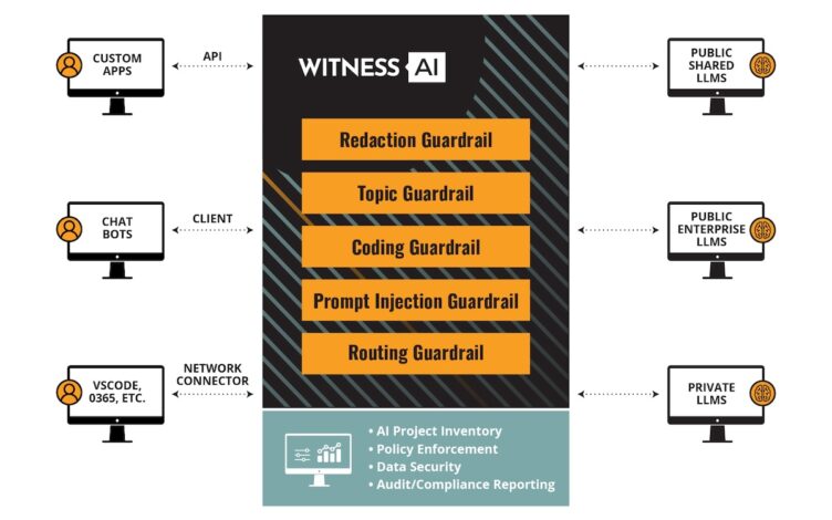 WitnessAI is a set of security microservices that can be deployed on premise in your environment, in a cloud sandbox, or your VPC, to ensure that your data and activity telemetry is separated from other customers. Unlike other AI governance solutions, WitnessAI provides regulatory segregation of your information.